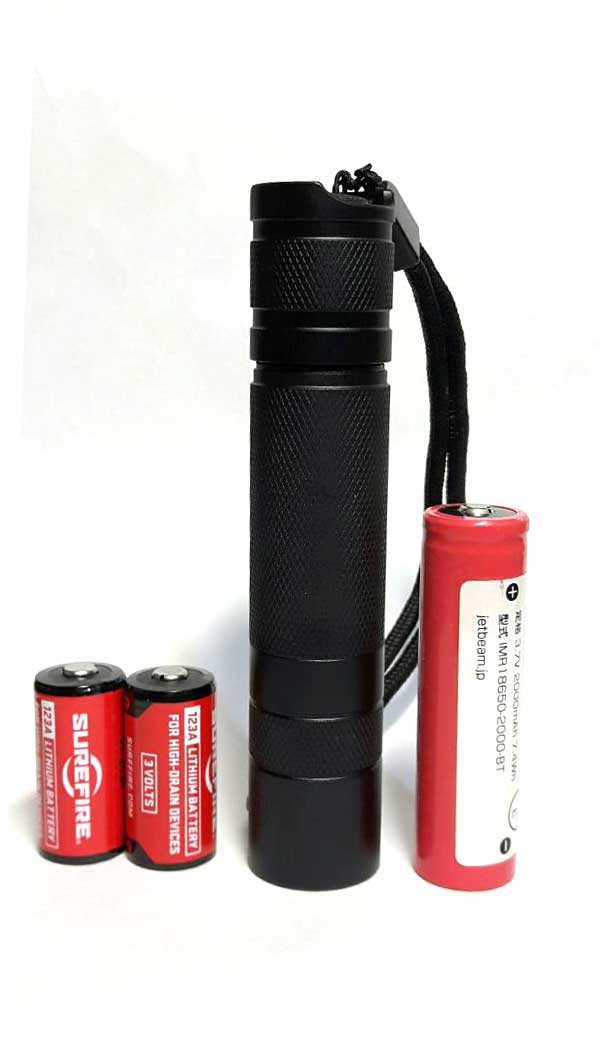4.2V 18650 Li-ion(3V CR123A x2もお使いいただけます)を使用、
