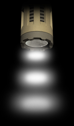 * Virtually indestructible LED emitter regulated to maximize light output and runtime