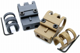 CR123A x2本、3本系で胴径1inchクラスのフラッシュライトを自転車にラバーベルト2点止めで安定固定出来るブラケット。クイックリリースしやすく、ブラケットのベースがDosun M1やM1+、S1シリーズと共用になっています。