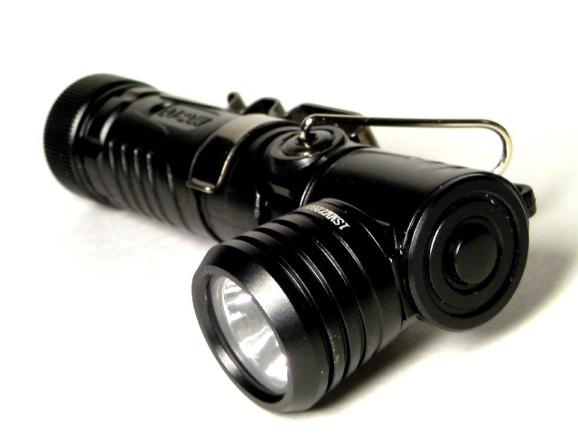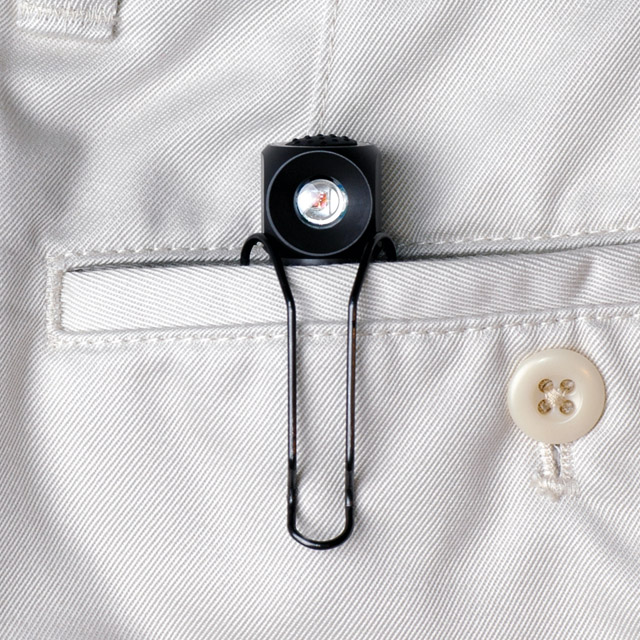 単3アルカリ x1本でMax120lms.のコンパクトハイパワーLED フラッシュライト。テンションの効いたクリップ搭載品。