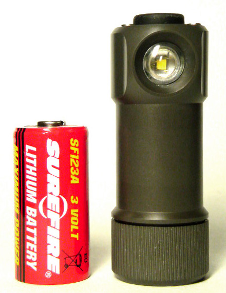 Cree XP-E R2bin搭載、CR123A x1本でMax190Lumensを発生します。