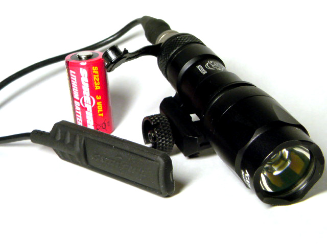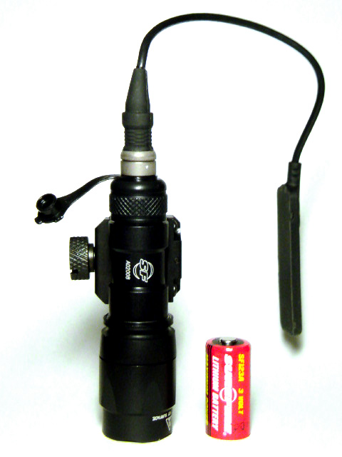 付属の延長エクステンションチューブでCR123Ax4本、Max630Lumens / 1.5hrs