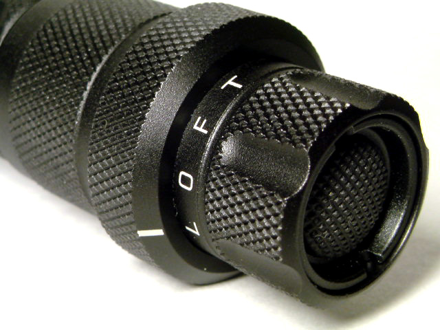 Lモードでスイッチを押すと100%点灯、押し続ける事によりスムースディマーコントロール機能が作動して光量を100~10%で無段階に調整する事が可能になっています。