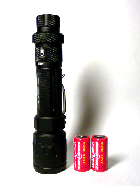 CR123A x2本で Max370Lumens / 1hrs.