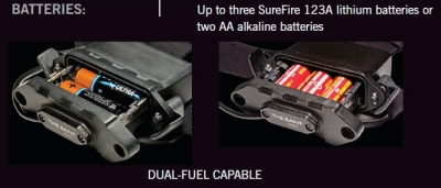 Battery: Two 123A lithiums